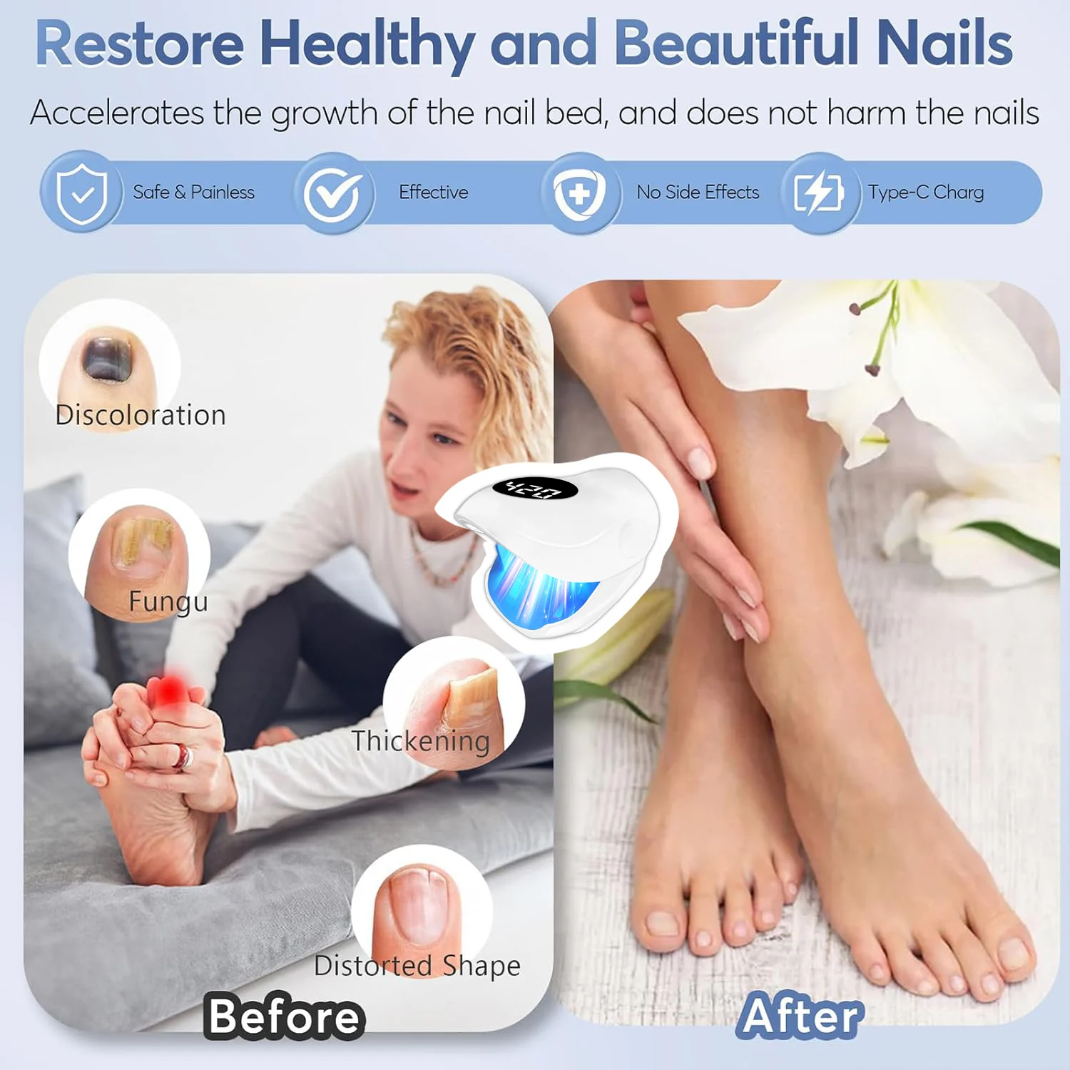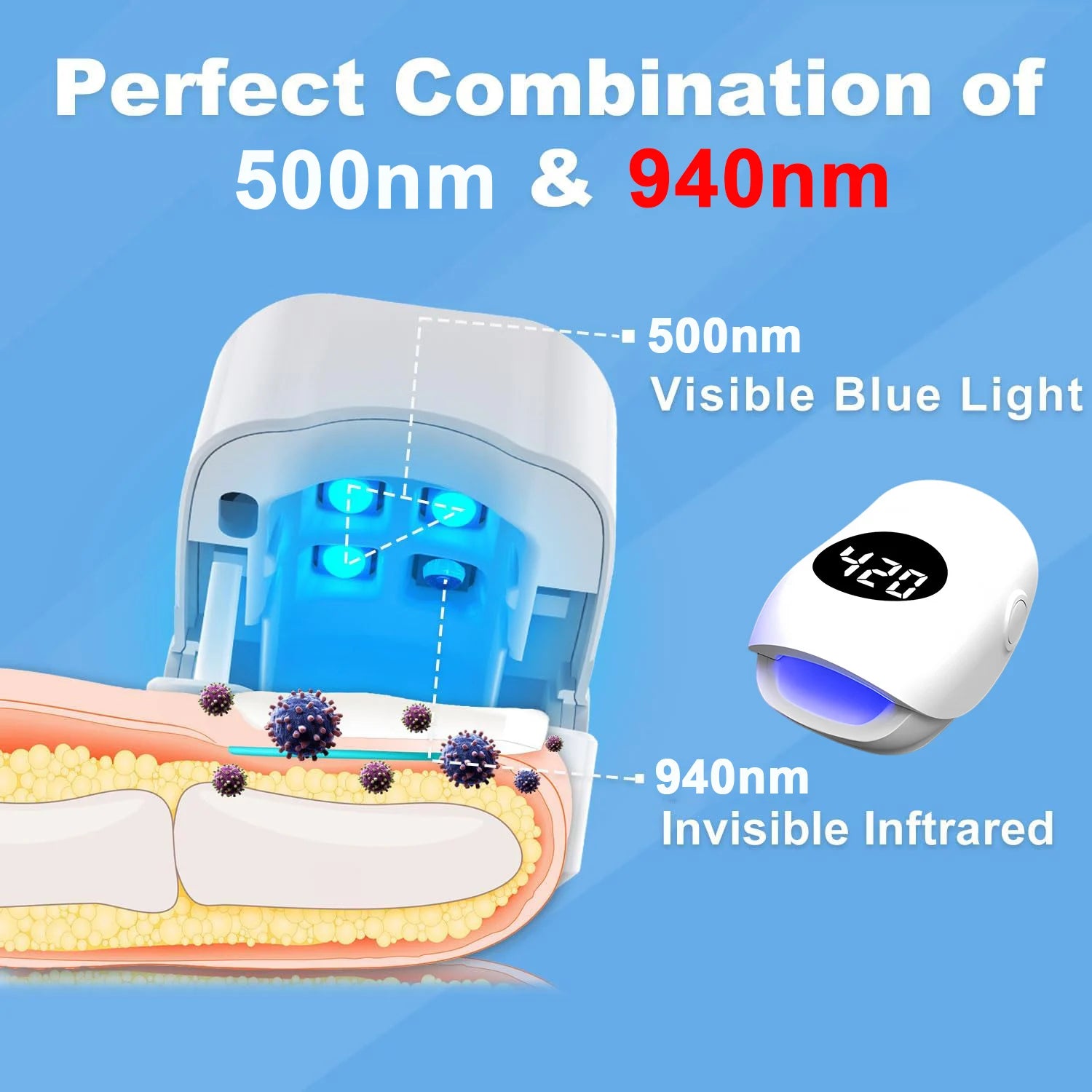Nail Fungus Laser Device 500NM Blue Light + 940NM Infrared Laser - Wireless Cold Therapy for Onychomycosis Toenail Fingernail Ca